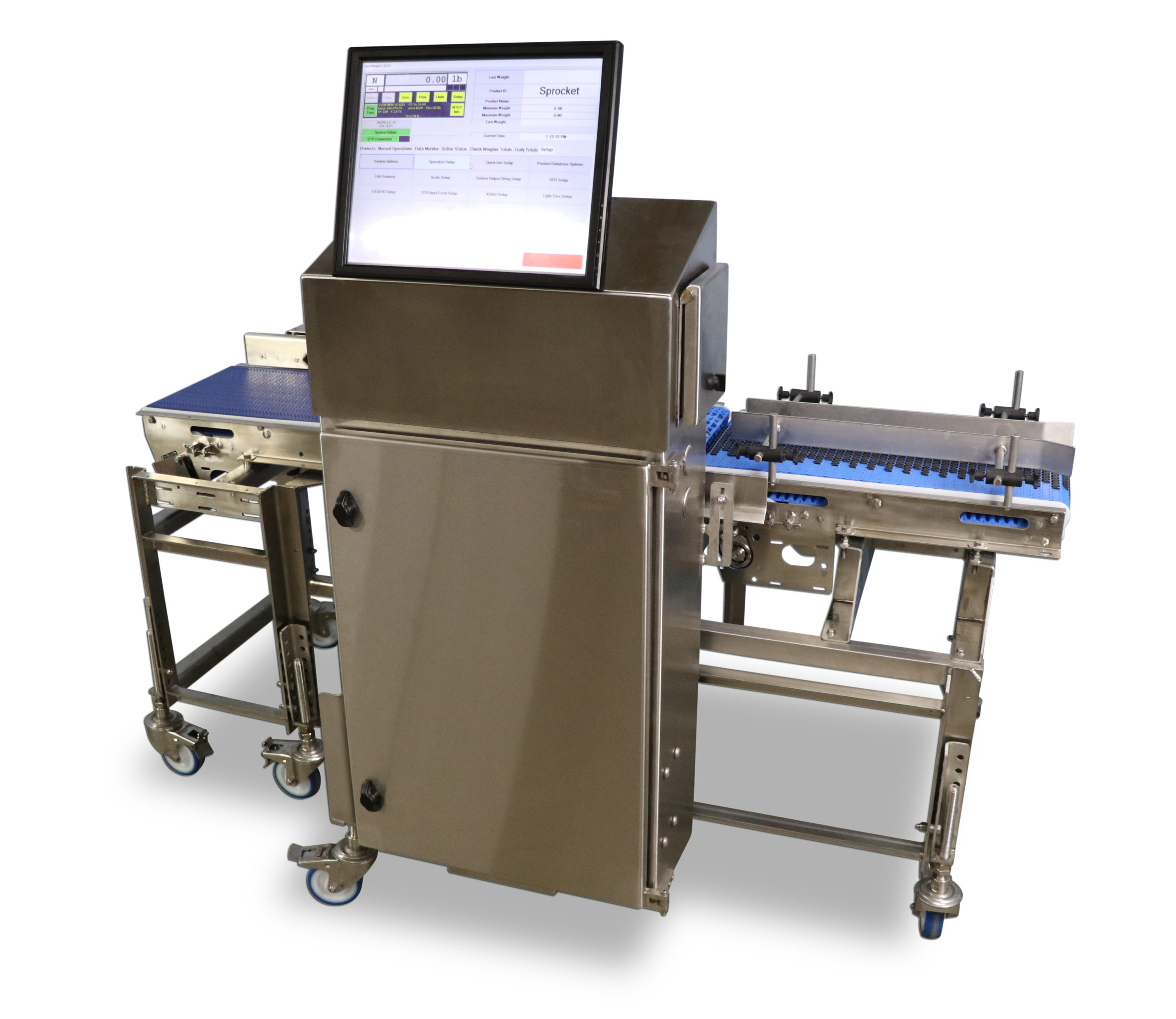 An inline checkweigher can weigh product in the conveyor line without having to pull the product off of the line and place it on a scale. This allows 100% product weight sampling.